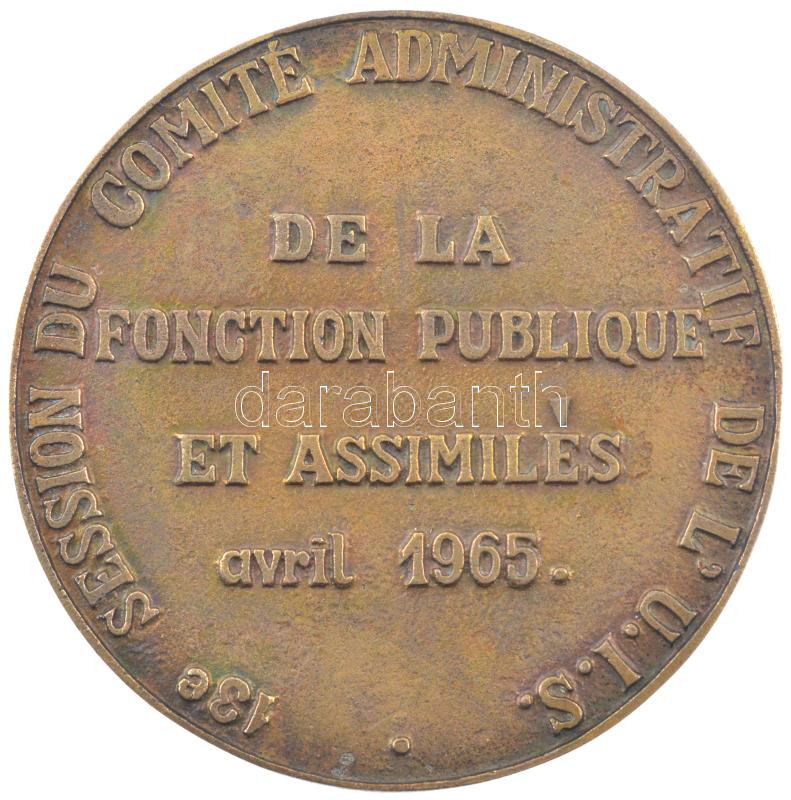 1965. ‘Budapest / Közalkalmazottak Ülése 1965. április’ kétoldalas, francia nyelvű bronz emlékérem tokban (67mm) T:1,1-