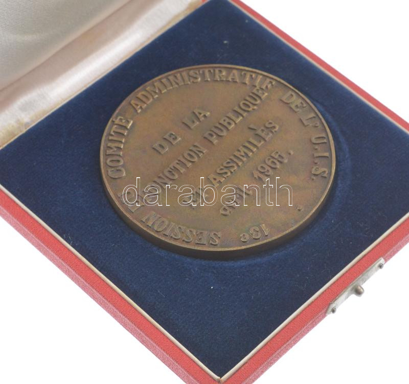 1965. ‘Budapest / Közalkalmazottak Ülése 1965. április’ kétoldalas, francia nyelvű bronz emlékérem tokban (67mm) T:1,1-<a href="https://www.darabanth.com/hu/gyorsarveres/432/kategoriak~Numizmatika/Magyar-emlekveretek-plakettek~1500009/1965-Budapest-