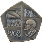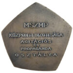 1968. ‘1918-1968 / MSZMP Központi Bizottsága Agitációs és Propaganda Osztálya’ ezüstpatinázott bronz plakett (75x78mm) T:2