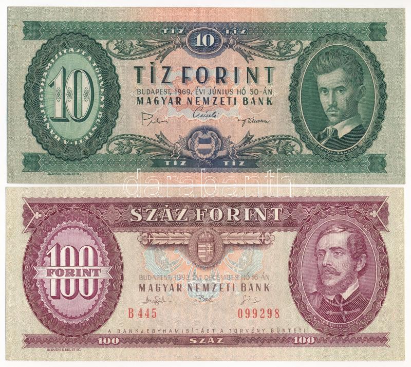 1969. 10Ft + 1993. 100Ft T:III szép papír, II Adamo F7, F38<a href="https://www.darabanth.com/hu/gyorsarveres/421/kategoriak~Numizmatika/Magyar-bankjegyek~3000007/1969-10Ft-plus-1993-100Ft-TIII-szep-papir-II-Adamo-F7-F38~II2673458/?utm_source=affili