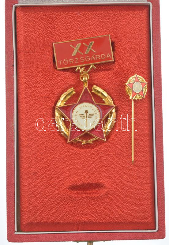 ~1970-1975. ‘XX. Törzsgárda – Külker. Minisztérium’ aranyozott, műgyantás kitüntető jelvény miniatűrrel, eredeti tokban T:1,1- a tokon folt<a href="https://www.darabanth.com/hu/gyorsarveres/432/kategoriak~Numizmatika/Falerisztika-Kituntetesek-jelven