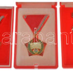 ~1970-1980. 24db-os szocialista kitüntetés tétel, benne ‘Kiváló Dolgozó’ műgyantás fém kitüntetés (17x); ‘Kiváló Munkáért’ műgyantás fém kitüntetés (6x) és ‘Szocialista Brigád – A vállalat kiváló brigádja’ műgyantás fém kitüntetés, mind tokban, néhány kiv