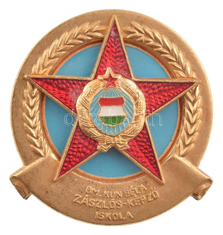 ~1970 ‘BM. Kun Béla Tiszthelyettesképző Iskola’ zománcozott és aranyozott fém jelvény (35mm) T:1-<a href="https://www.darabanth.com/hu/gyorsarveres/417/kategoriak~Numizmatika/Falerisztika-Kituntetesek-jelvenyek~2000019/7E1970-BM-Kun-Bela-Tiszthelyet