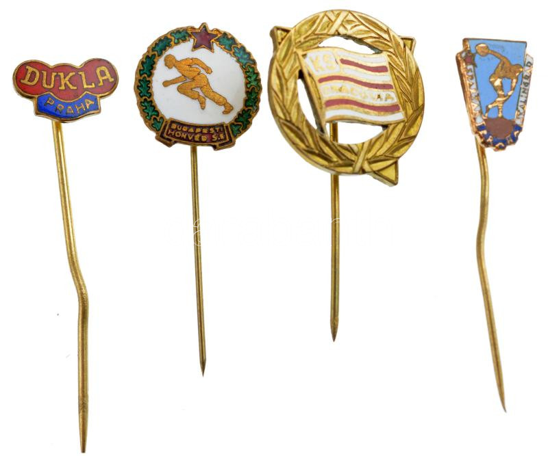 ~1970. ‘Budapesti Honvéd SE’ zománcozott fém jelvény + Csehszlovákia DN ‘Dukla Praha’ zománcozott fém jelvény + ‘Spartak Stalingrad Praha’ zománcozott fém jelvény + Lengyelország ‘Cracovia Kraków’ zománcozott fém jelvény T:1-,2<a href="https://www.d