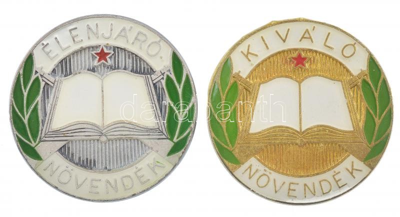 ~1970. ‘Középfokú Katonai Tanintézet Kiváló Növendék /Élenjáró Növendék’ aranyozott, ezüstözött, festett, műgyantás jelvény (2xklf) T:2<a href="https://www.darabanth.com/hu/gyorsarveres/427/kategoriak~Numizmatika/Falerisztika-Kituntetesek-jelvenyek~