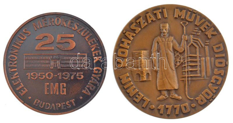 ~1970. ‘Lenin Kohászati Művek Diósgyőr 1770’ Br emlékplakett (62mm) + 1975. ‘Elektronikus Mérőkészülékek Gyára – 25 éves’ fém emlékérem (55mm) T:1-,2 egyiken ph.<a href="https://www.darabanth.com/hu/gyorsarveres/432/kategoriak~Numizmatika/Magyar-eml