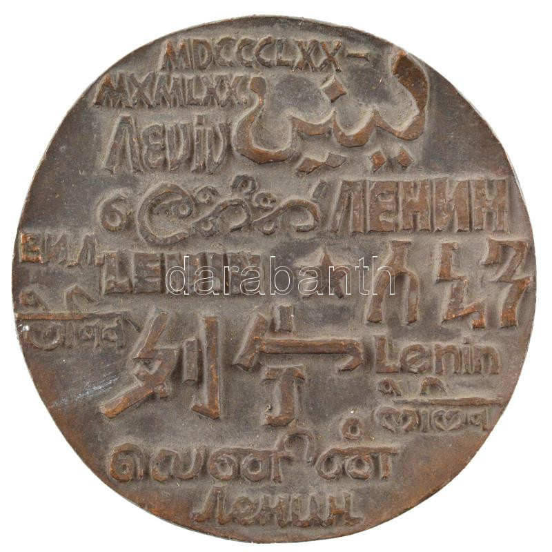 1970. Lenin születésének századik évfordulójára készült emlékérem, rajta az évforduló ‘MDCCCLXX-MXMLXX’ évszámai valamint Lenin neve tucatnyi különböző nyelven, egyoldalas, öntött bronz (92mm) T:1-