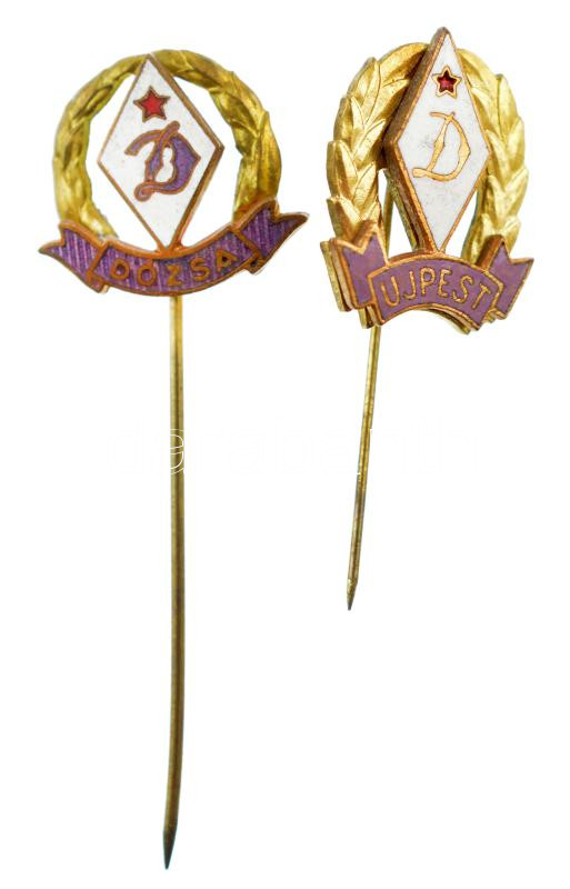 ~1970. ‘Újpesti Dózsa’ zománcozott fém sportjelvény (2xklf, egyik Dózsa, másik Újpest felirattal) T:1-,2<a href="https://www.darabanth.com/hu/gyorsarveres/433/kategoriak~Numizmatika/Sportdijak-es-sport-emlekermek~2000011/7E1970-Ujpesti-Dozsa-zomanco