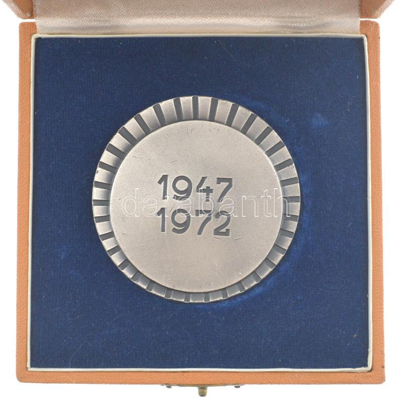1972. ’25 éves a magyar népgazdasági tervezés 1947-1972′ ezüstözött fém plakett dísztokban (60mm) T:1-