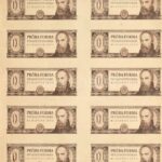 1973. Táncsics 01 ‘PRÓBA FORMA’ előlap kész, hátlap üres, barna nyomat, 10db-os T:I- feltekert, hajtatlan, gyűrődésekkel / Hungary 1973. Táncsics 01 ‘PRÓBA FORMA’ unissued banknote design, front proof, backside empty, brown print, in sheet of 10 C:AU roll