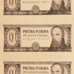 1973. Táncsics 01 ‘PRÓBA FORMA’ előlap kész, hátlap üres, barna nyomat, 10db-os T:I- feltekert, hajtatlan, gyűrődésekkel / Hungary 1973. Táncsics 01 ‘PRÓBA FORMA’ unissued banknote design, front proof, backside empty, brown print, in
