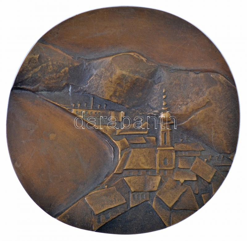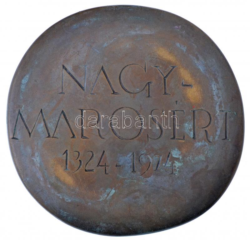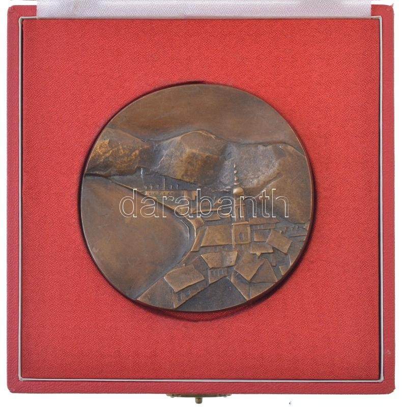 1974. ‘Nagymarosért 1324-1974’ kétoldalas bronz plakett, eredeti tokban (~88mm) T:1- patina
