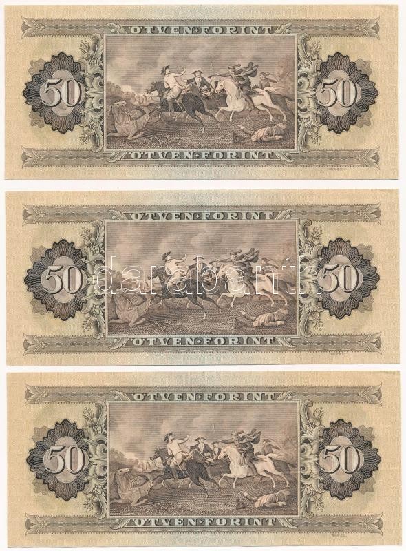 1975. 50Ft (3x) ‘D772 013984 – D772 013986’ sorszámkövetők, nyomdai papírránccal T:III szép papír Adamo F21