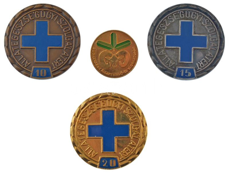 ~1975. ‘Budavidéki Állami Erdő és Vadgazdaság’ aranyozott, festett bronz jelvény (31mm) + Állategészségügyi szolgálatért 10 – 15 – 20 év’ 3xklf aranyozott, ezüstpatinázott műgyantás bronz érem (50mm) T:1-<a href="https://www.darabanth.com/hu/gyorsar