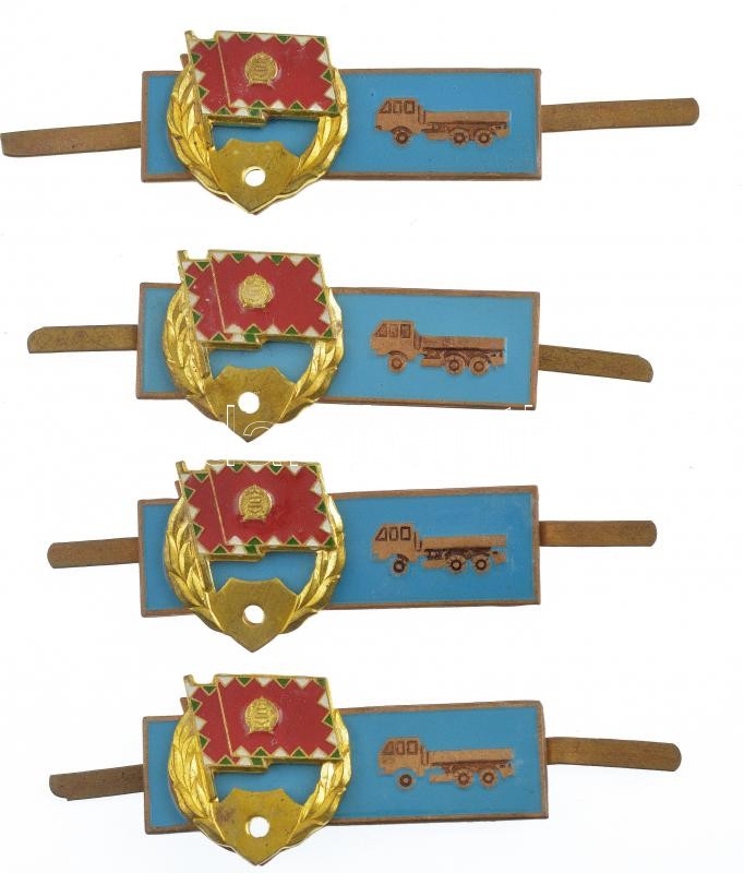 ~1975. Osztályos gépjárművezető (teherautó) zománcozott fém jelvény (4x) T:1-,2<a href="https://www.darabanth.com/hu/gyorsarveres/438/kategoriak~Numizmatika/Militaria~2000003/7E1975-Osztalyos-gepjarmuvezeto-teherauto-zomancozott-fem-jelveny-4x-T1-2~