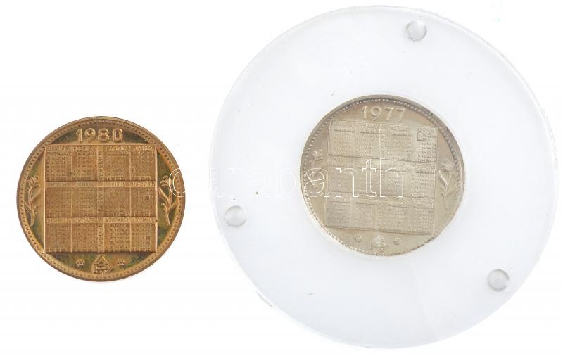 1977. ‘Naptárérem’ fém emlékérem tokban (24mm) + 1980. ‘Naptárérem’ aranyozott Br emlékérem kapszulában (24mm) T:1 (eredetileg PP) patina<a href="https://www.darabanth.com/hu/gyorsarveres/421/kategoriak~Numizmatika/Magyar-emlekveretek-plakettek~3000
