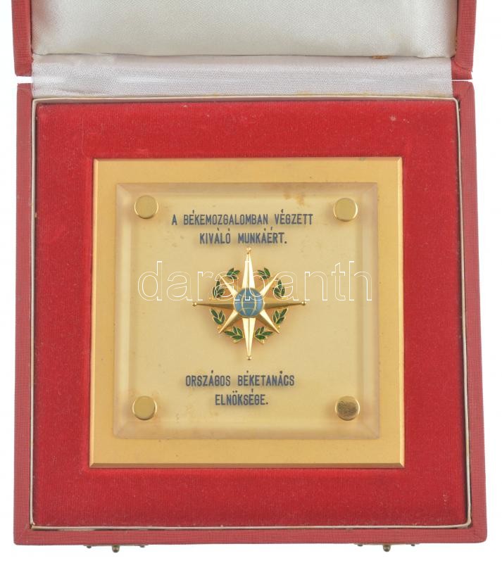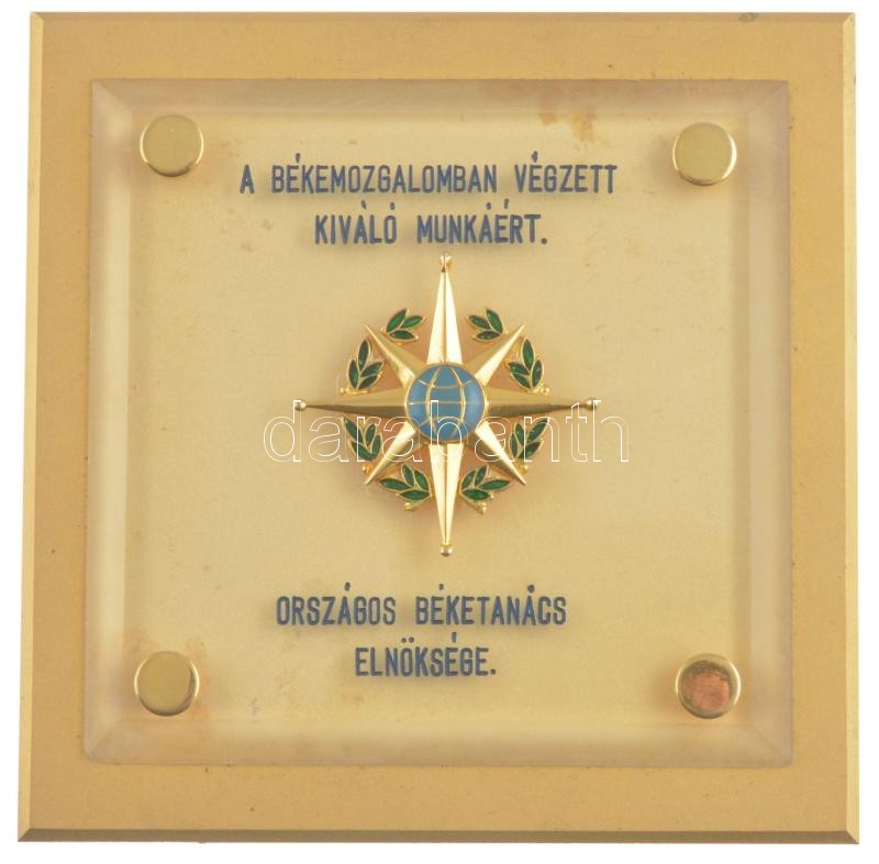 ~1980. ‘A békemozgalomban végzett kiváló munkáért – Országos Béketanács Elnöksége’ plexi és aranyozott fém plakett (120x120mm) T:1-<a href="https://www.darabanth.com/hu/gyorsarveres/421/kategoriak~Numizmatika/Magyar-emlekveretek-plakettek~3000023/7E