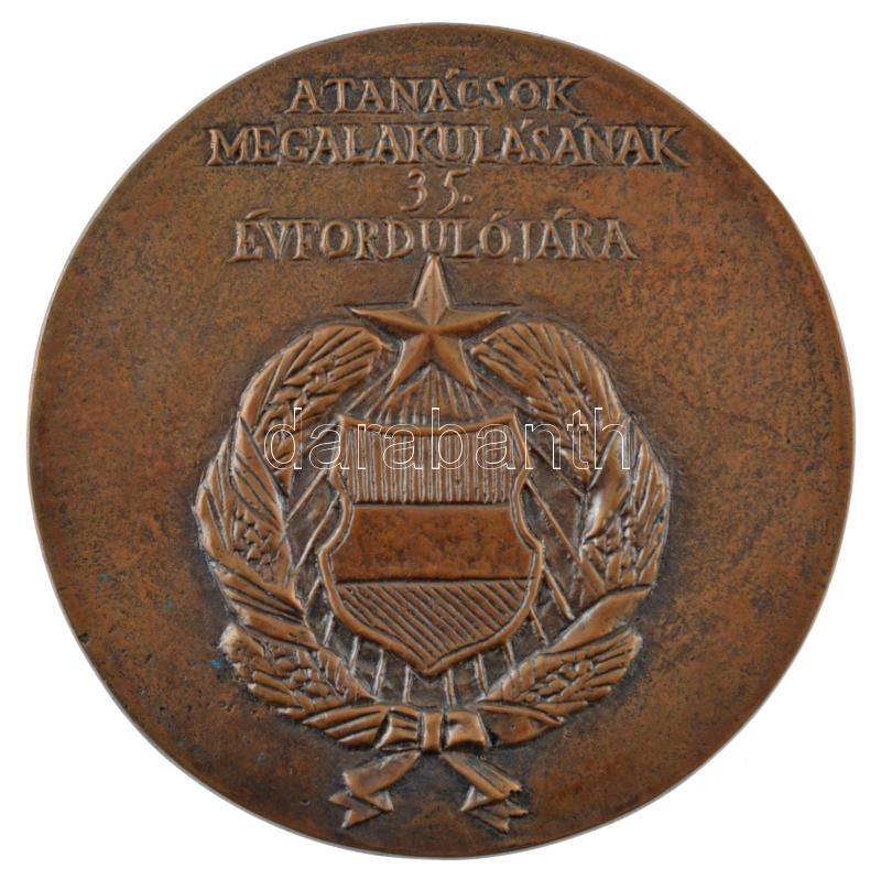 ~1980. ‘A tanácsok megalakulásának 35. évfordulójára’ egyoldalas bronz emlékérem (98mm) T:1-