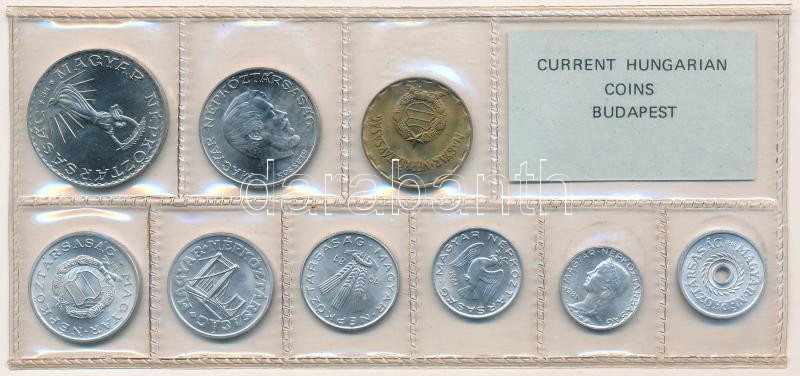 1981. 2f-10Ft (9xklf) érmés forgalmi sor fóliatokban, benne ‘FAO’ 10Ft T:1 patina Adamo FO14<a href="https://www.darabanth.com/hu/gyorsarveres/432/kategoriak~Numizmatika/Magyar-es-magyar-verdejelu-fem-es-ezustpenzek~1500008/1981-2f-10Ft-9xklf-ermes-