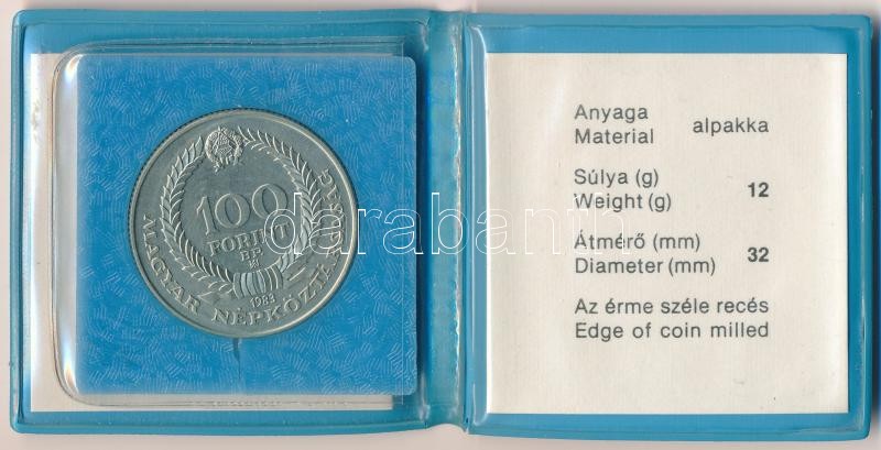 1983. 100Ft alpakka ‘Czóbel Béla’ eredeti tokban, tanúsítvánnyal T:BU ujjlenyomat, kis patina, az érmét tartó tok törött Adamo EM75