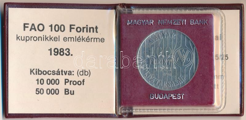 1983. 100Ft Cu-Ni ‘FAO – Több gabonát a világnak’ bordó műbőr tokban, tanúsítvánnyal T:BU patina Adamo EM72<a href="https://www.darabanth.com/hu/gyorsarveres/417/kategoriak~Numizmatika/Magyar-es-magyar-verdejelu-fem-es-ezustpenzek~2000008/1983-100Ft