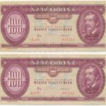 1984. 100Ft (2x) ‘B 428 043224 – B 428 043225’ sorszámkövetők T:I,I- sarokhajlás Adamo F35<a href="https://www.darabanth.com/hu/gyorsarveres/422/kategoriak~Numizmatika/Magyar-bankjegyek~2000006/1984-100Ft-2x-B-428-043224-B-428-043225-sorszamkovetok-