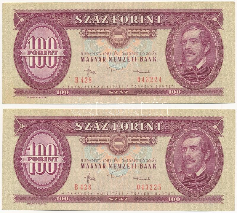 1984. 100Ft (2x) ‘B 428 043224 – B 428 043225’ sorszámkövetők T:I,I- sarokhajlás Adamo F35