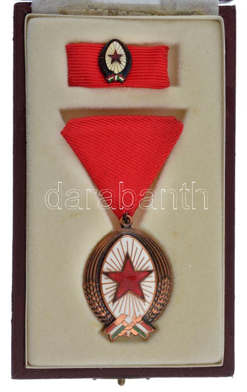 1985. ‘Munka Érdemrend’ bronz fokozata, zománcozott bronz kitüntetés mellszalagon, miniatűrrel szalagsávon T:1- NMK 601.<a href="https://www.darabanth.com/hu/gyorsarveres/436/kategoriak~Numizmatika/Falerisztika-Kituntetesek-jelvenyek~2500006/1985-Mu
