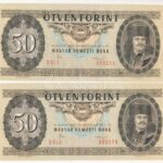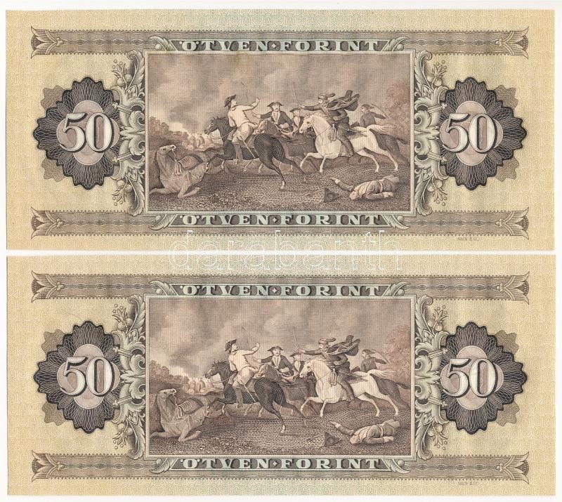 1986. 50Ft (2x) sorszámkövetők ‘D 010 009288 – D 010 009289’ nyomdai papírráncokkal T:I Adamo F24<a href="https://www.darabanth.com/hu/gyorsarveres/422/kategoriak~Numizmatika/Magyar-bankjegyek~2000006/1986-50Ft-2x-sorszamkovetok-D-010-009288-D-010-0