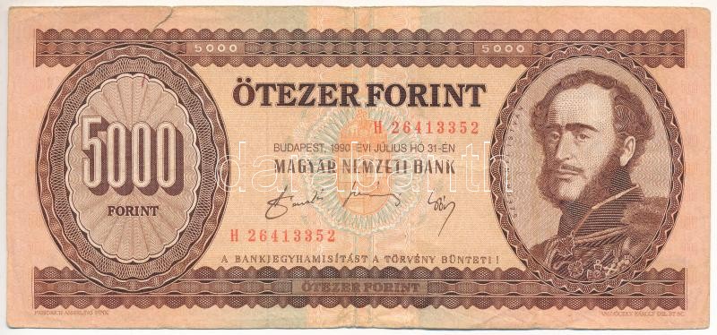 1990. 5000Ft ‘H 26413352’ T:III szakadás Hungary 1990. 5000 Forint ‘H 26413352’ C:F tear Adamo F49