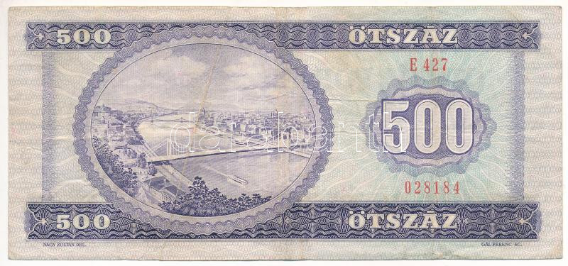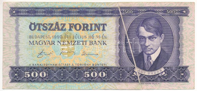 1990. 500Ft ‘E 427 028184’ látványos papírránccal T:III Adamo F43
