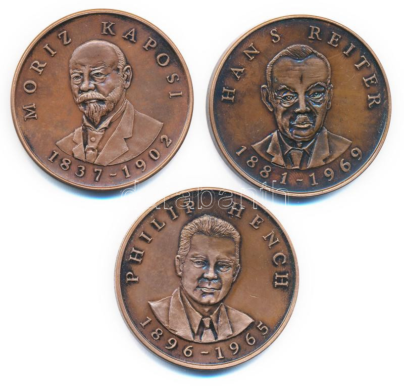 1991. 3xklf ‘XII. Európai Reumatológiai Kongresszus’ kétoldalas bronz emlékérem ‘Moriz Kaposi 1837-1902′,’Hans Reiter 1881-1969′,’Philip Hench 1896-1965’ (43mm) T:1<a href="https://www.darabanth.com/hu/gyorsarveres/436/kategoriak~Numizmatika/Magyar-