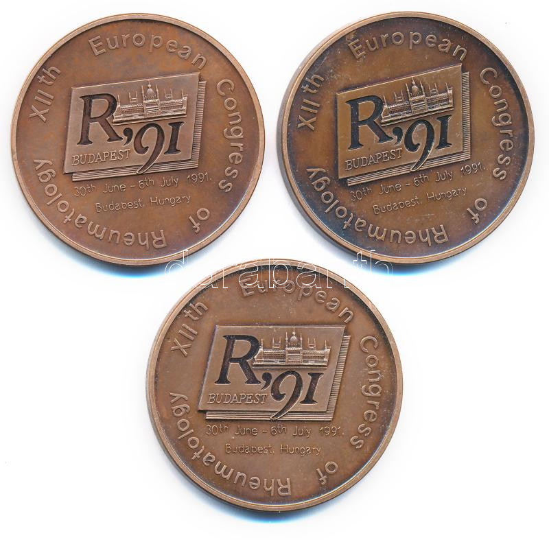 1991. 3xklf ‘XII. Európai Reumatológiai Kongresszus’ kétoldalas bronz emlékérem ‘Moriz Kaposi 1837-1902′,’Hans Reiter 1881-1969′,’Philip Hench 1896-1965’ (43mm) T:1