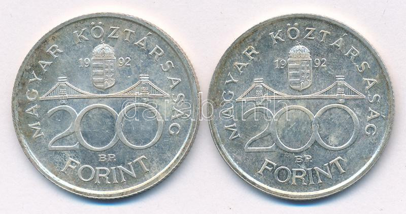 1992. 200Ft Ag ‘MNB’ (2x) T:AU,XF patina, az egyiken kis ph Adamo F13<a href="https://www.darabanth.com/hu/gyorsarveres/438/kategoriak~Numizmatika/Magyar-es-magyar-verdejelu-fem-es-ezustpenzek~1500008/1992-200Ft-Ag-MNB-2x-TAU-XF-patina-az-egyiken-ki