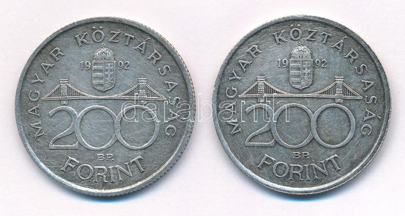 1992. 200Ft ‘MNB’ Ag (2x) T:2 patina Adamo F13