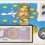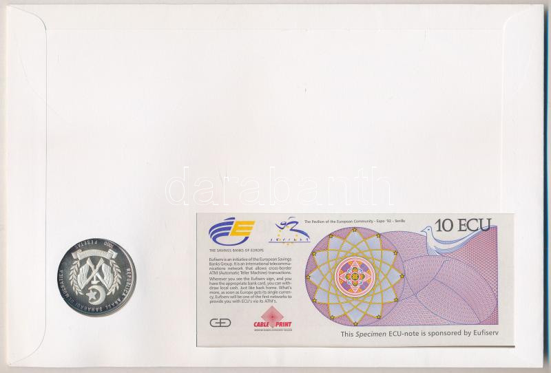 1992 ‘Európai valuta’ érmés és bankjegyes borítékban 1992. 10ECU fantázia bankjeggyel és Szaharai Arab Demokratikus Köztársaság 1992. Ag 10ECU / 1000P érmével T:I,1 patina 1992 ‘European Currency’ envelope with 1992. 10 ECU fantasy