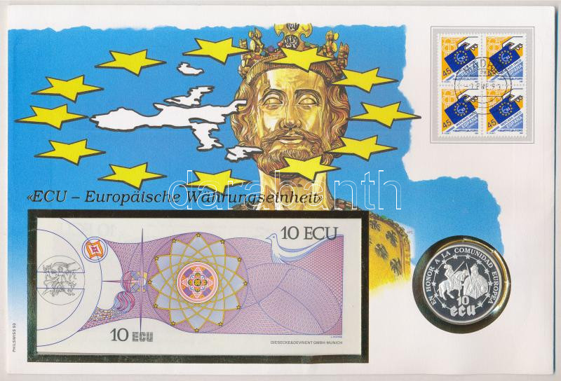 1992 ‘Európai valuta’ érmés és bankjegyes borítékban 1992. 10ECU fantázia bankjeggyel és Szaharai Arab Demokratikus Köztársaság 1992. Ag 10ECU / 1000P érmével T:I,1 patina 1992 ‘European Currency’ envelope with 1992. 10 ECU fantasy banknote and Saharawi A