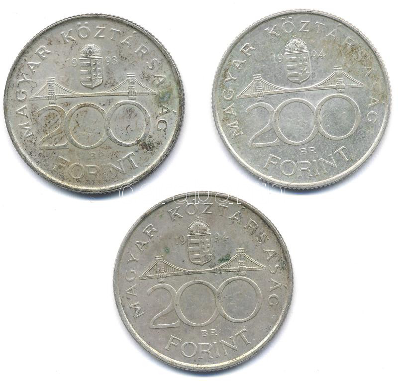 1993. 200Ft Ag ‘MNB’ + 1994. 200Ft Ag ‘Deák’ (2x) T:2 patina Adamo F13, F13.1<a href="https://www.darabanth.com/hu/gyorsarveres/435/kategoriak~Numizmatika/Magyar-es-magyar-verdejelu-fem-es-ezustpenzek~1000008/1993-200Ft-Ag-MNB-plus-1994-200Ft-Ag-Dea