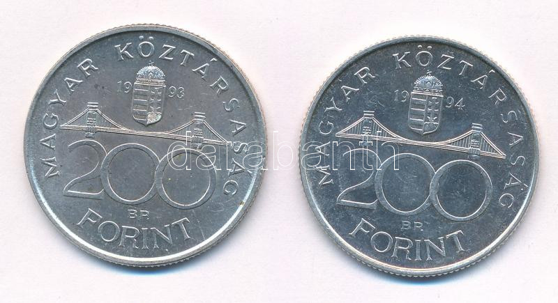 1993. 200Ft Ag ‘MNB’ + 1994. 200Ft ‘Deák’ T:1-,2 Adamo F13, F13.1<a href="https://www.darabanth.com/hu/gyorsarveres/435/kategoriak~Numizmatika/Magyar-es-magyar-verdejelu-fem-es-ezustpenzek~1000008/1993-200Ft-Ag-MNB-plus-1994-200Ft-Deak-T1-2-Adamo-F1