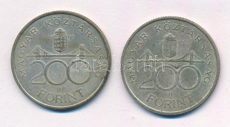 1993. 200Ft Ag ‘MNB’ (2x) T:2 patina Adamo F13<a href="https://www.darabanth.com/hu/gyorsarveres/422/kategoriak~Numizmatika/Magyar-es-magyar-verdejelu-fem-es-ezustpenzek~2000007/1993-200Ft-Ag-MNB-2x-T2-patina-Adamo-F13~II2680452/?utm_source=affiliat