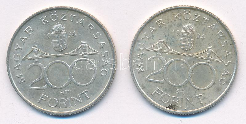 1994. 200Ft ‘Deák’ (2x) T:AU,XF Adamo F13.1