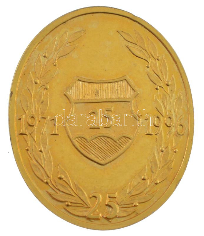 1996. ‘Központi Rendeltetésű Szervezetek Parancsnoksága 1971-1996’ aranyozott fém emlékérem (31x26mm) T:1-<a href="https://www.darabanth.com/hu/gyorsarveres/435/kategoriak~Numizmatika/Magyar-emlekveretek-plakettek~1000009/1996-Kozponti-Rendeltetesu-