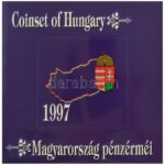 1997. 50f-200Ft (10xklf) „Magyarország pénzérméi” forgalmi sor dísztokban . A belső tokon a ragasztás részben elengedett. T:PP kis patina / Hungary 1997. 50 Fillér – 200 Forint (10xdiff) „Magyarország pénzérméi (Coins of Hungary)” coin set in case. The gl