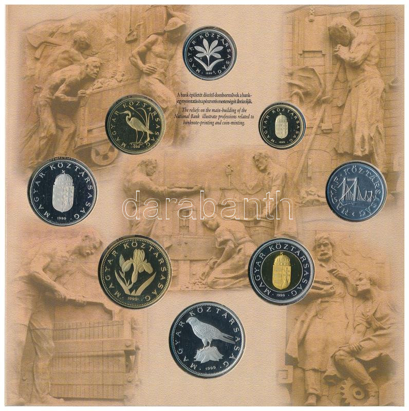1999. 50f-100Ft (8xklf) ’75 éves a Magyar Nemzet iBank’ forgalmi sor dísztokban, belső tok ragasztása minimálisan elengedett. T:PP Adamo FO32.1<a href="https://www.darabanth.com/hu/gyorsarveres/439/kategoriak~Numizmatika/Magyar-forgalmi-sorok~500021