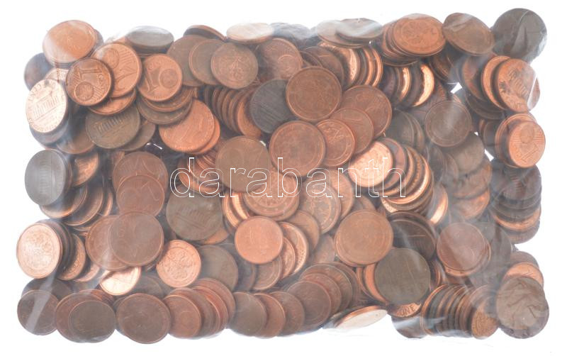 ~1kg vegyes európai 1c + 2c + amerikai 1c érmékből álló tétel T:vegyes Mixed coin lot with 1 Euro Cent, 2 Euro Cent and USA 1 Cent (~1kg) C:mixed<a href="https://www.darabanth.com/hu/gyorsarveres/436/kategoriak~Numizmatika/Kulfoldi-fem-es-ezustpenze