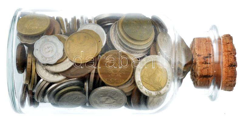 ~1kg vegyes, nagyrészt külföldi fémpénz tétel dugóval ellátott üvegben, közte sok különböző országból származó érme, többek között Kelet-Karibi Államok, Izrael, Törökország, Svédország, Mexikó stb. T:2-3 ~1kg mixed,