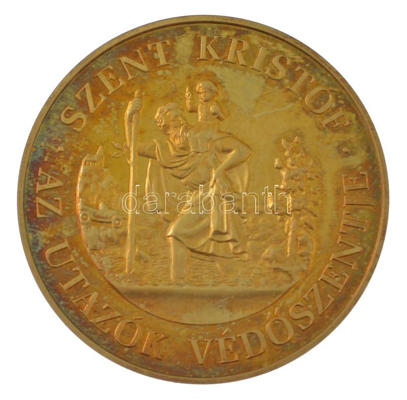 ~2000. ‘Szent Kristóf – Az utazók védőszentje / Volán Szent Kristóf emlékérem’ jelzett, aranyozott Ag emlékérem dísztokban, tanúsítvánnyal (31,10g/0.925/42,5mm) T:AU patina, ujjlenyomat<a href="https://www.darabanth.com/hu/gyorsarveres/438/kategoria