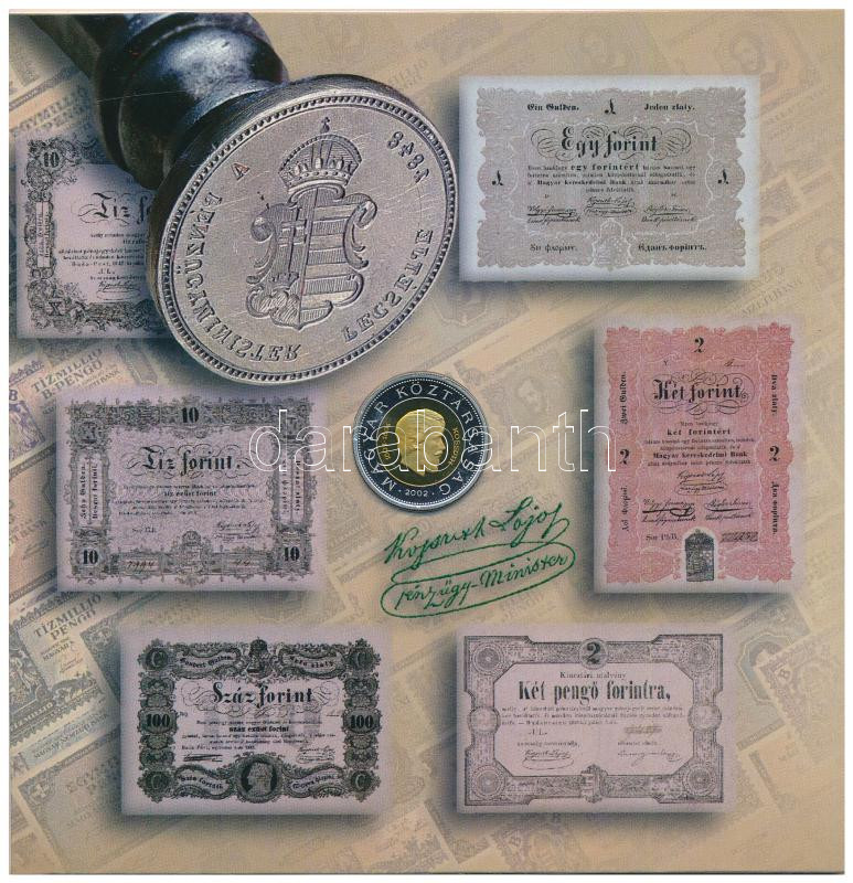 2002. 1Ft-100Ft (7xklf) + 100Ft ‘Kossuth’ forgalmi sor szettben T:PP belső tok ragasztása elengedett Adamo FO35.1
