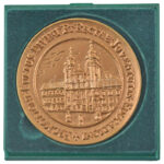 2002. ‘Czuczor Gergely Bencés Gimnázium Győr 1627-1802-2002 / PROMOTIONI CULTUS DIVINI ET RECTAE JUVENTUTIS EDUCATIONI’ kétoldalas sárgaréz emlékérem tokban (72mm) T:1<a href="https://www.darabanth.com/hu/gyorsarveres/435/kategoriak~Numizmatika/Magy