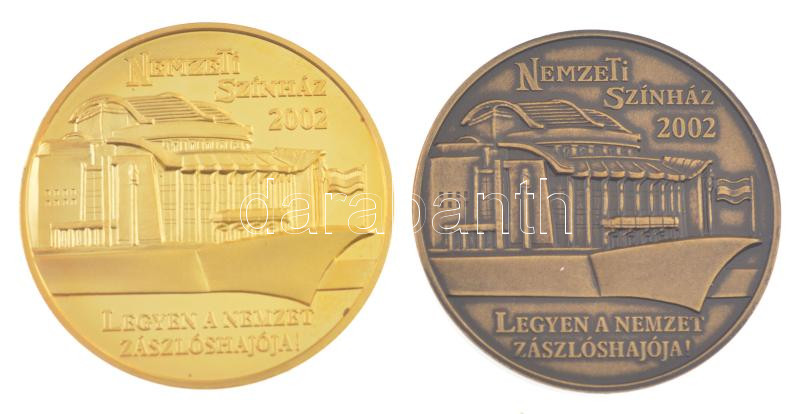 2002. ‘Nemzeti Színház – Legyen a nemzet zászlóshajója!’ 2xklf kétoldalas aranyozott bronz, bronz emlékérem (42,5mm) T:1
